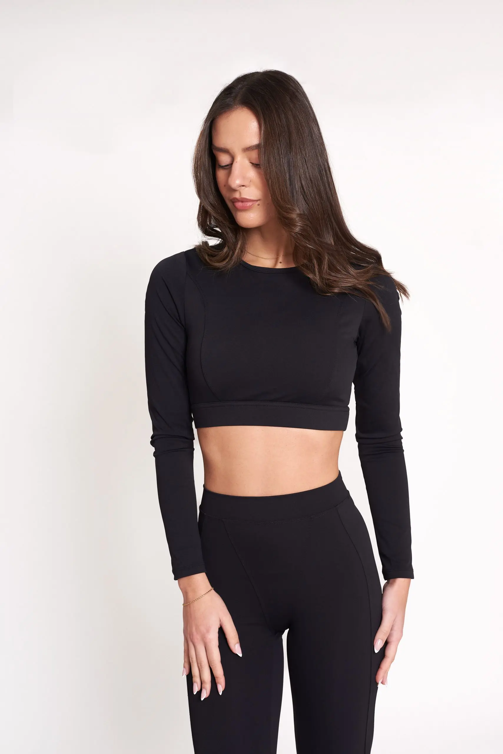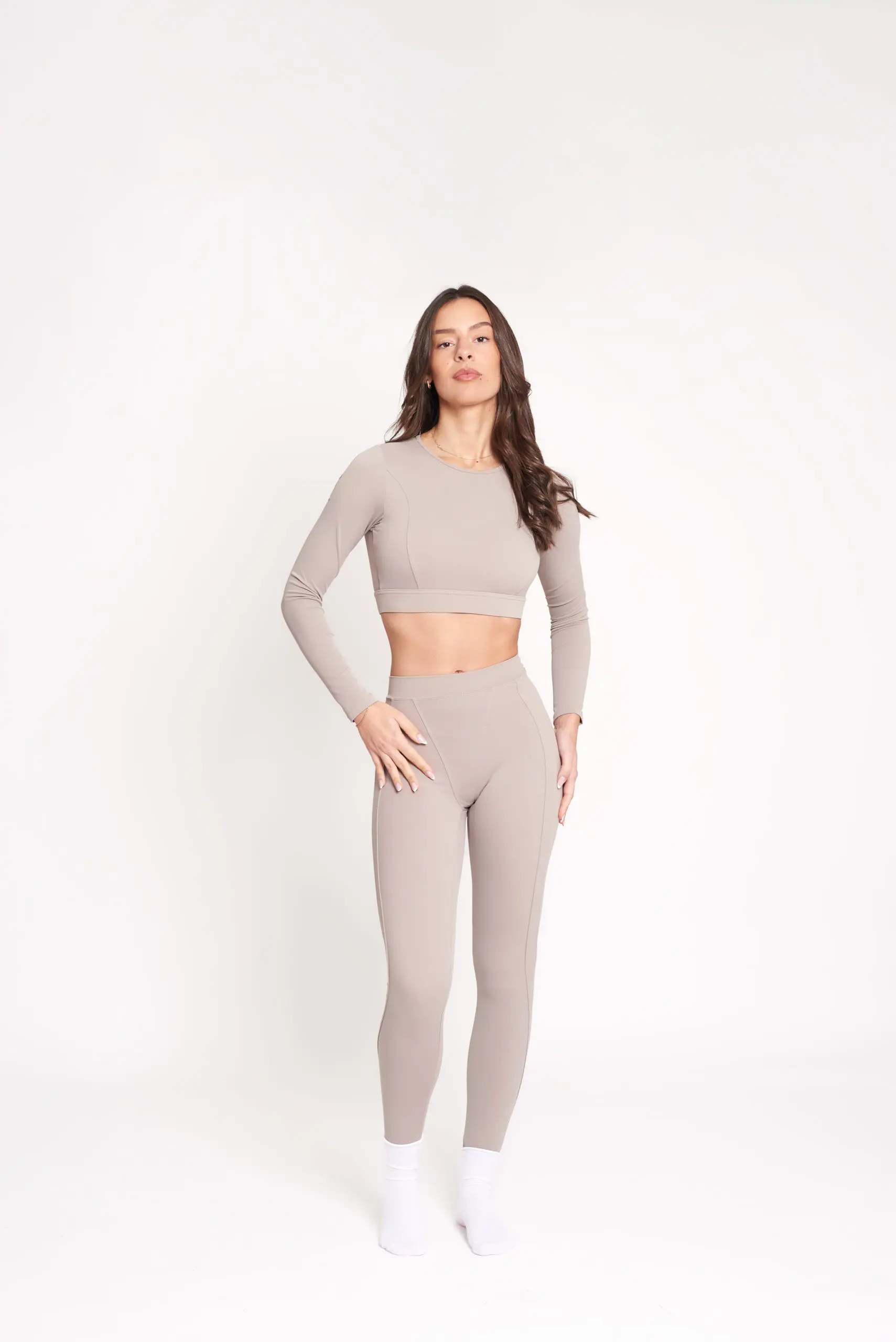 Confeccionado con nuestra firma de tejido de alto rendimiento (80% Nylon y 20% Elastano), este set ofrece una compresión inteligente que sujeta donde más lo necesitas mientras mantiene una suavidad excepcional al contacto con la piel. La chaqueta cuenta con un diseño ergonómico y puños con abertura para el pulgar, mientras que el top y los leggings de tiro alto aseguran un ajuste firme durante cualquier actividad, desde una sesión de yoga y pilates hasta un entrenamiento de alta intensidad. Es la prenda perfecta para quienes buscan un look impecable en su lanzamiento de 2026.